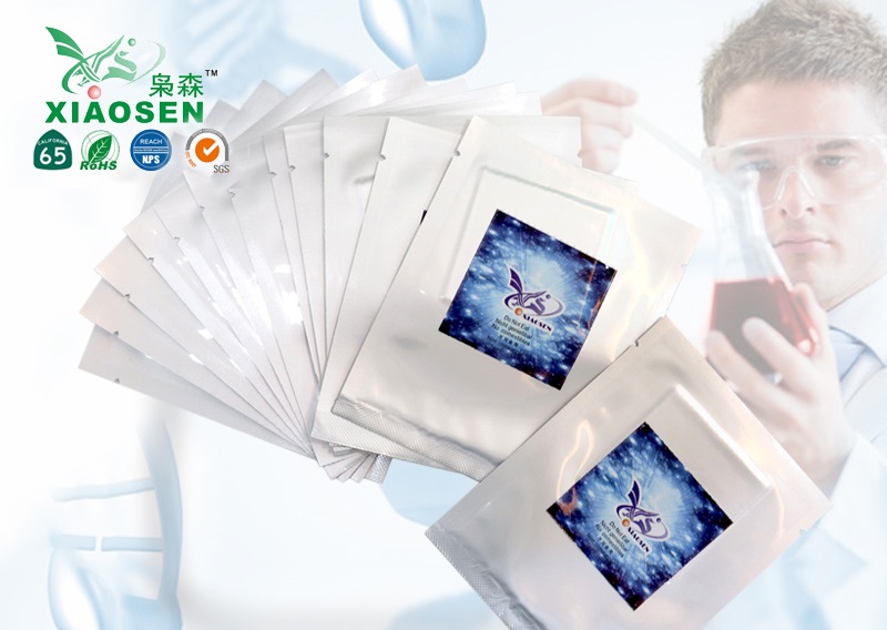 梟森第三代環(huán)保高效防霉片是梟森公司嚴(yán)格按照歐盟標(biāo)準(zhǔn)開發(fā)出的又一款新型防霉產(chǎn)品。其原理是將防霉精華液蘊(yùn)含在防霉片的夾層之中,通過(guò)控制夾層縫隙的大小、片材面積的大小來(lái)控制氣體的釋放速度和濃度。而且,它還能隨濕度高低來(lái)控制氣體的緩釋濃度(干燥狀態(tài)下不釋放防霉氣體),可以在產(chǎn)品包裝箱內(nèi)的濕度大于45的情況下與水蒸氣接觸引發(fā)A與B物自動(dòng)發(fā)生化學(xué)反應(yīng),生成一種保護(hù)性氣體,無(wú)孔不入地與霉菌孢子充分接觸,迅速穿透微生物的細(xì)胞膜,破壞其DNA,使細(xì)菌或霉菌無(wú)法繁職,以達(dá)到商品防霉防腐的效果。所以本品既廣泛適用于皮革、人造革、紡織品、紙張、竹木材料、陶瓷、電器、文物等多個(gè)領(lǐng)域生產(chǎn)、貯存、運(yùn)輸中的抗菌防霉處理,又是家庭(換季)鞋類、衣物、書籍、文物、家用電器、皮革制品等抗菌防霉的最佳選擇。